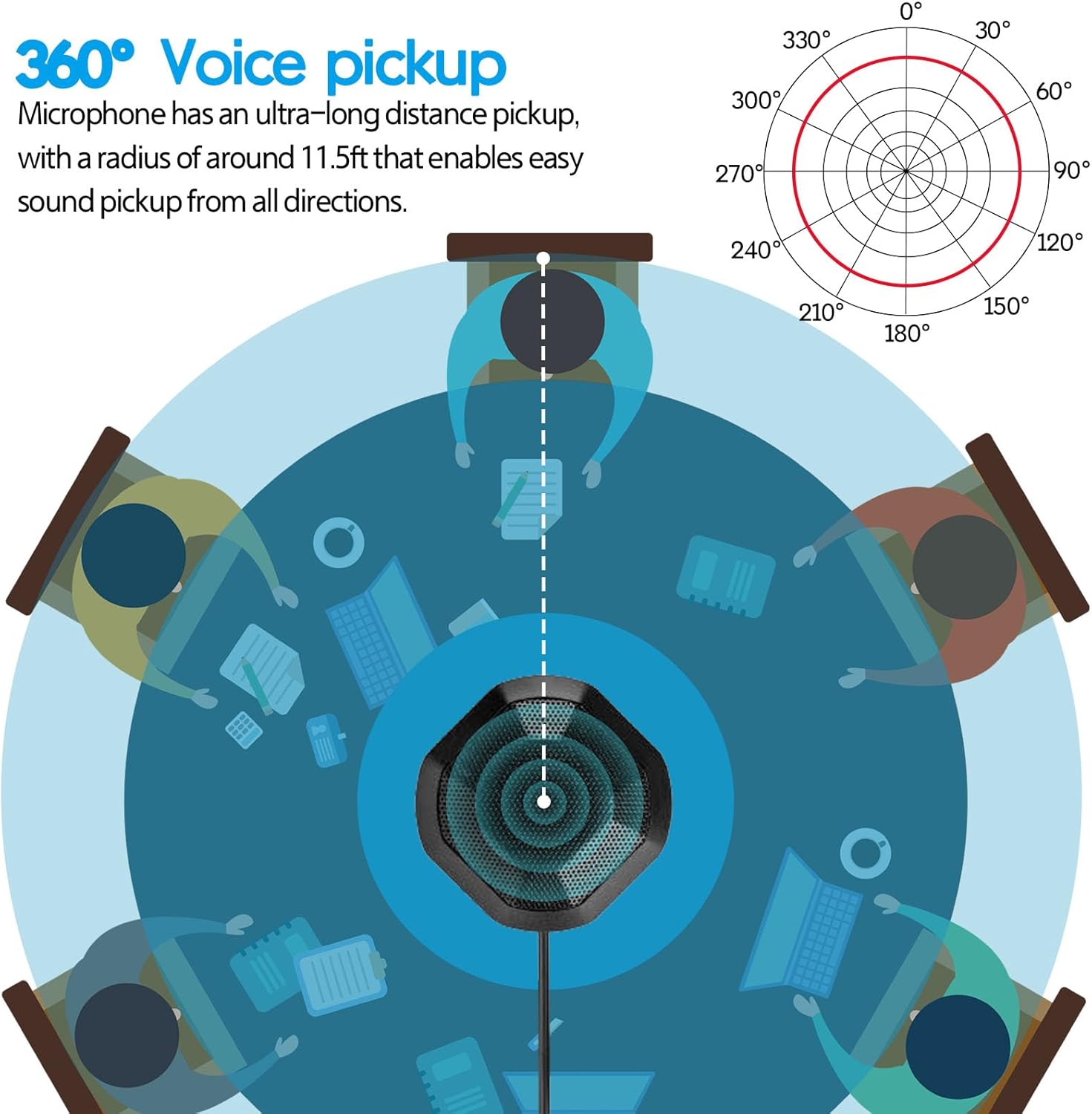 360° Omnidirectional Pickup :This is a professional condenser microphone (not a speaker or speakerphone), featuring an omnidirectional pickup pattern with an impressive 11.5 ft (3.5m) capture range. The pc microphone effortlessly picks up voices from all directions, ensuring clear, natural sound transmission even at low volumes. No need to shout—your voice comes through loud and clear, making remote meetings more effortless and professional
