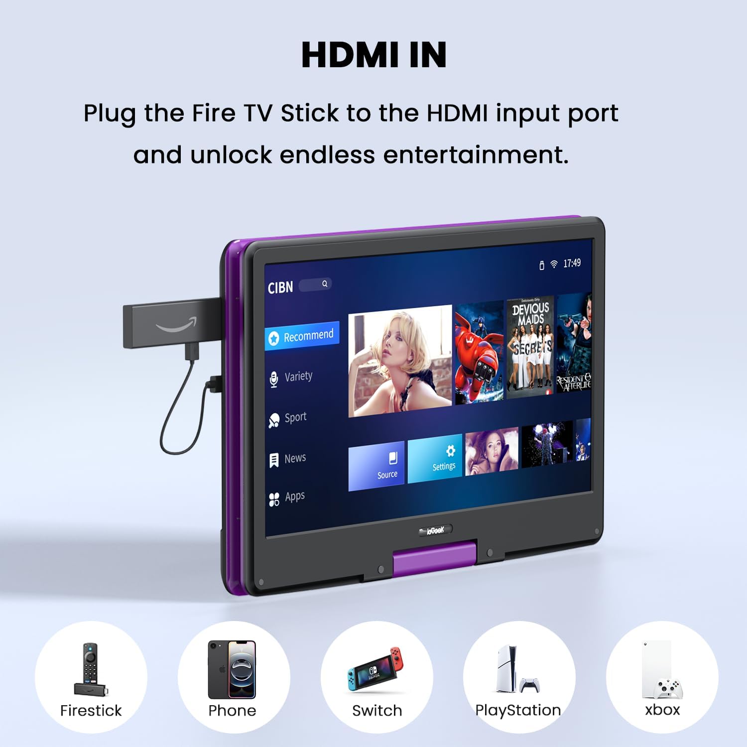 【HDMI Input】 This portable DVD player with HDMI features a built-in input port for connecting your Fire TV Stick, game consoles (like the Switch and PS5), or other devices. Instantly turn it into a second screen for streaming or gaming.