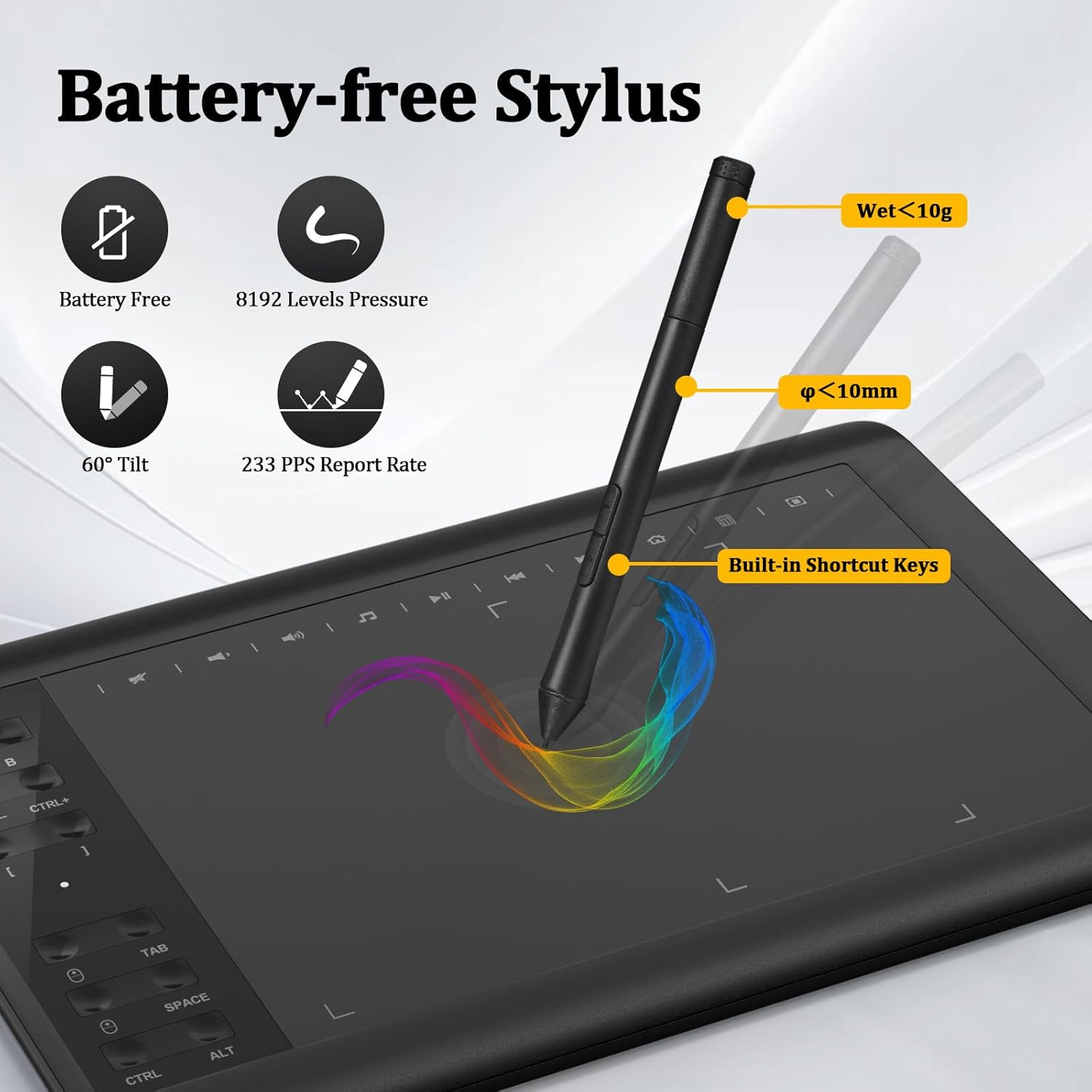 8192 Passive Stylus Technology: A more affordable passive stylus technology offers 8192 levels of pressure sensitivity allows you to draw accurate lines of any weight and opacity according to the pressure you apply to the pen, sharper line with light pressure and thick line with hard pressure, perfect for artistry design or unique brush effect for photo retouching.
