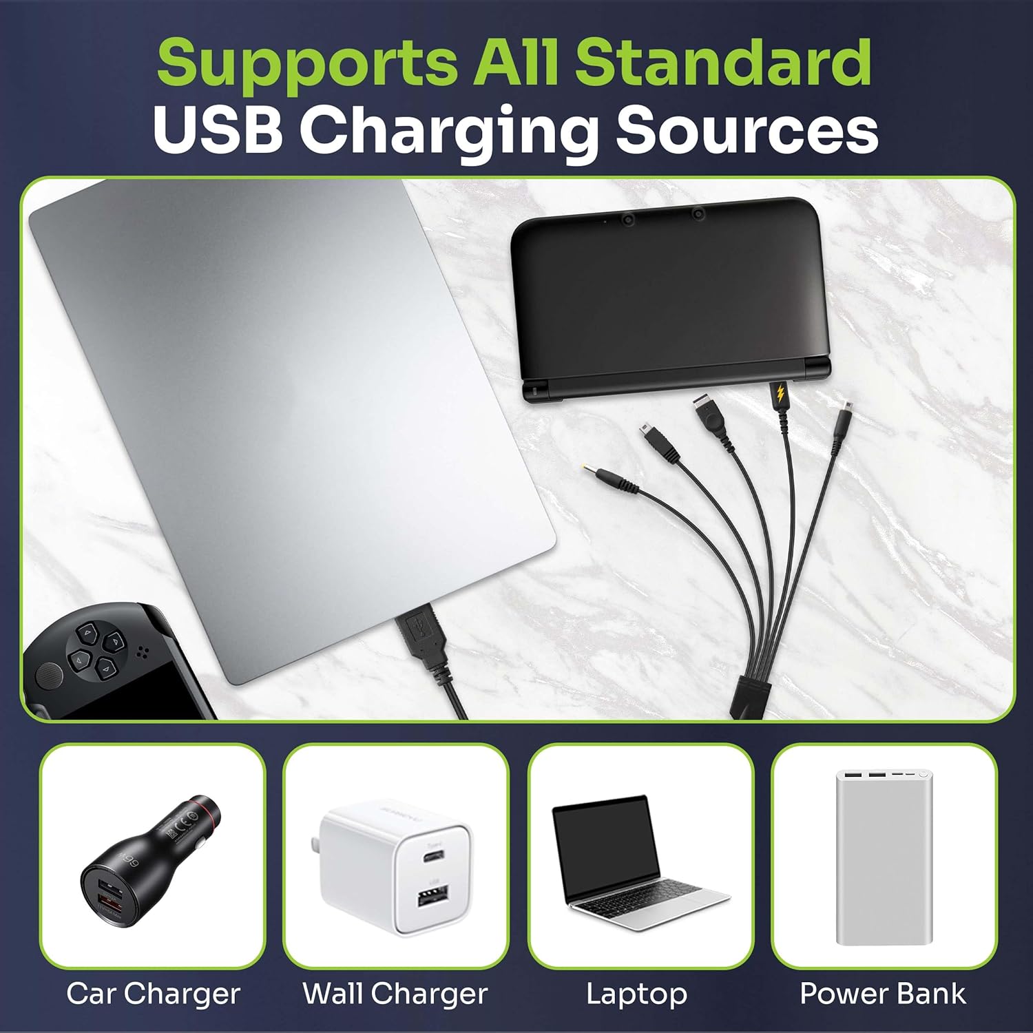 UNIVERSAL COMPATIBILITY: Enjoy unmatched versatility with a single cable that supports charging for Nintendo New 3DS XL, new 3DS, 3DS XL, 3DS, New 2DS XL, 2DS, Nintendo DSi charger, DSi XL, DS Lite, Gameboy Advance SP, Wii U Gamepad charger, and PSP.