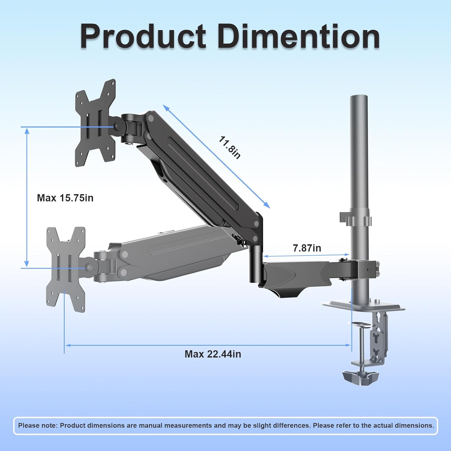 Package Includes – SUPTEK Single Monitor Arm x 1, Mounting Hardware Kit x 1, VESA Plate x 1