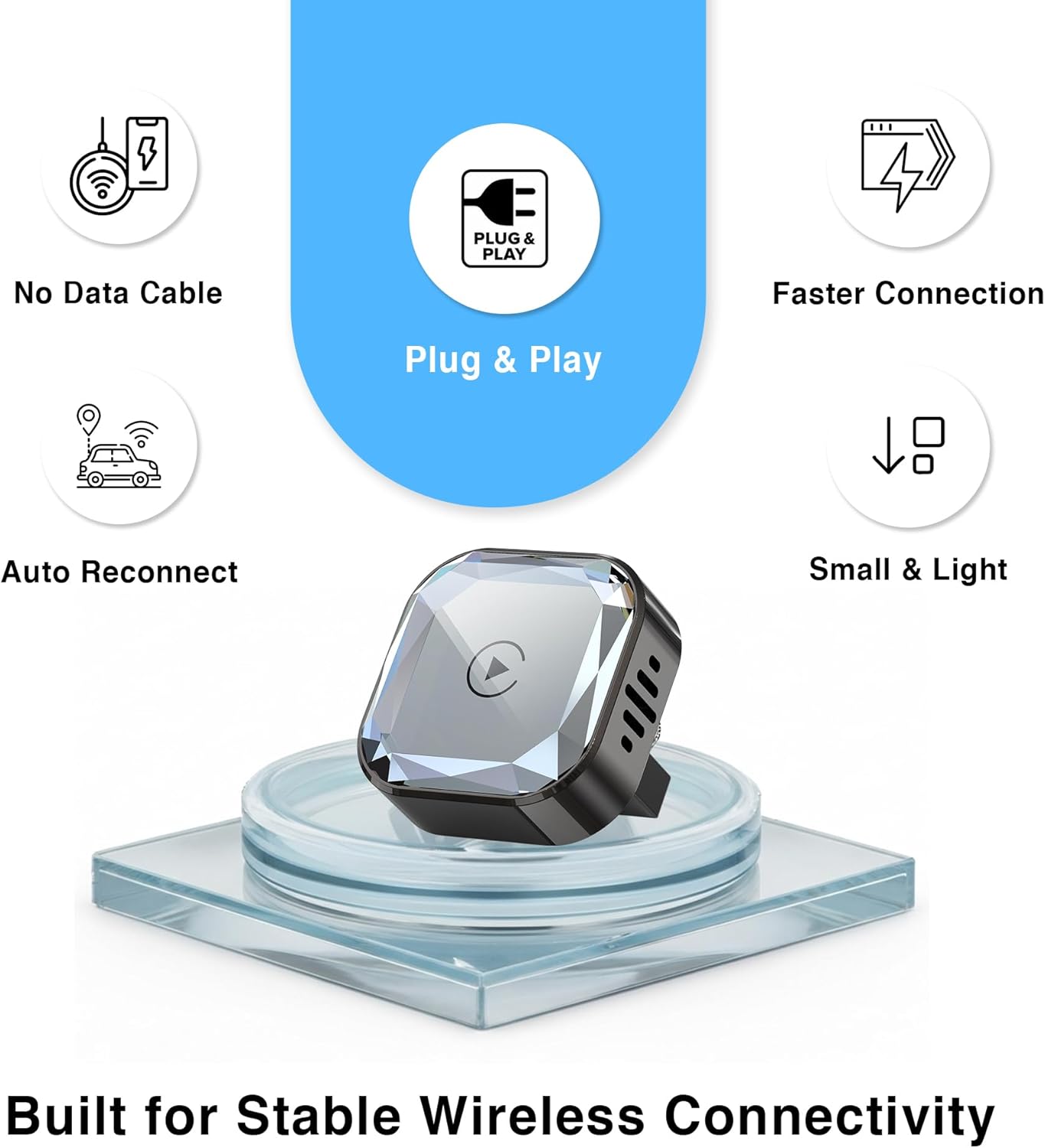 PLUG & PLAY – SMOOTH STABLE CONNECTION: Set up our best carplay wireless adapter in just simple steps—no extra apps, drivers, or updates needed. Once paired, it reconnects automatically, even if your phone is in your pocket or bag, for a smooth, lag-free driving experience