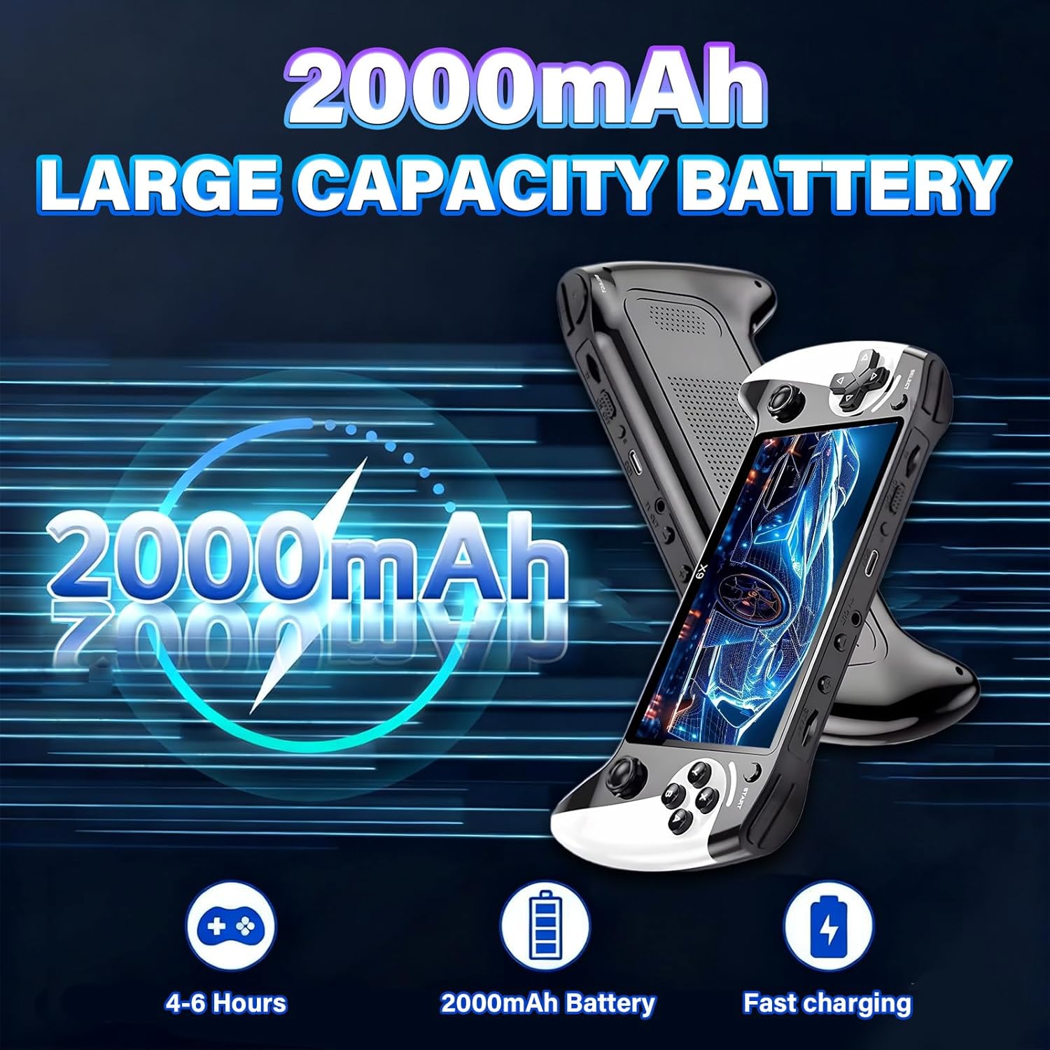 Long-Lasting Battery & Ergonomic Controls: This hand held game console supports Type-C charging for rapid power restoration. The built-in 2000mAh battery delivers 4-6 hours of continuous use on a single charge, meeting the endurance demands for on-the-go gaming or daily entertainment. Additionally, the 360° anti-slip joystick and textured crystal button design prevent slippage during gameplay, ensuring stable control for precise positioning and agile maneuvers